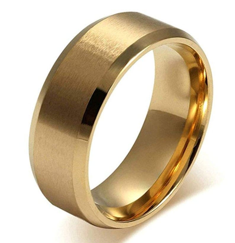 Men's 8mm Yellow Gold Wedding Band, Brushed Center, Smooth Sides, 100% Tungsten Carbide US Ring Size 6-16 (Scratch, Ding & Water Resistant) #$175.50+ #https://tinyurl.com/Yellow-Gold-Wedding-Band