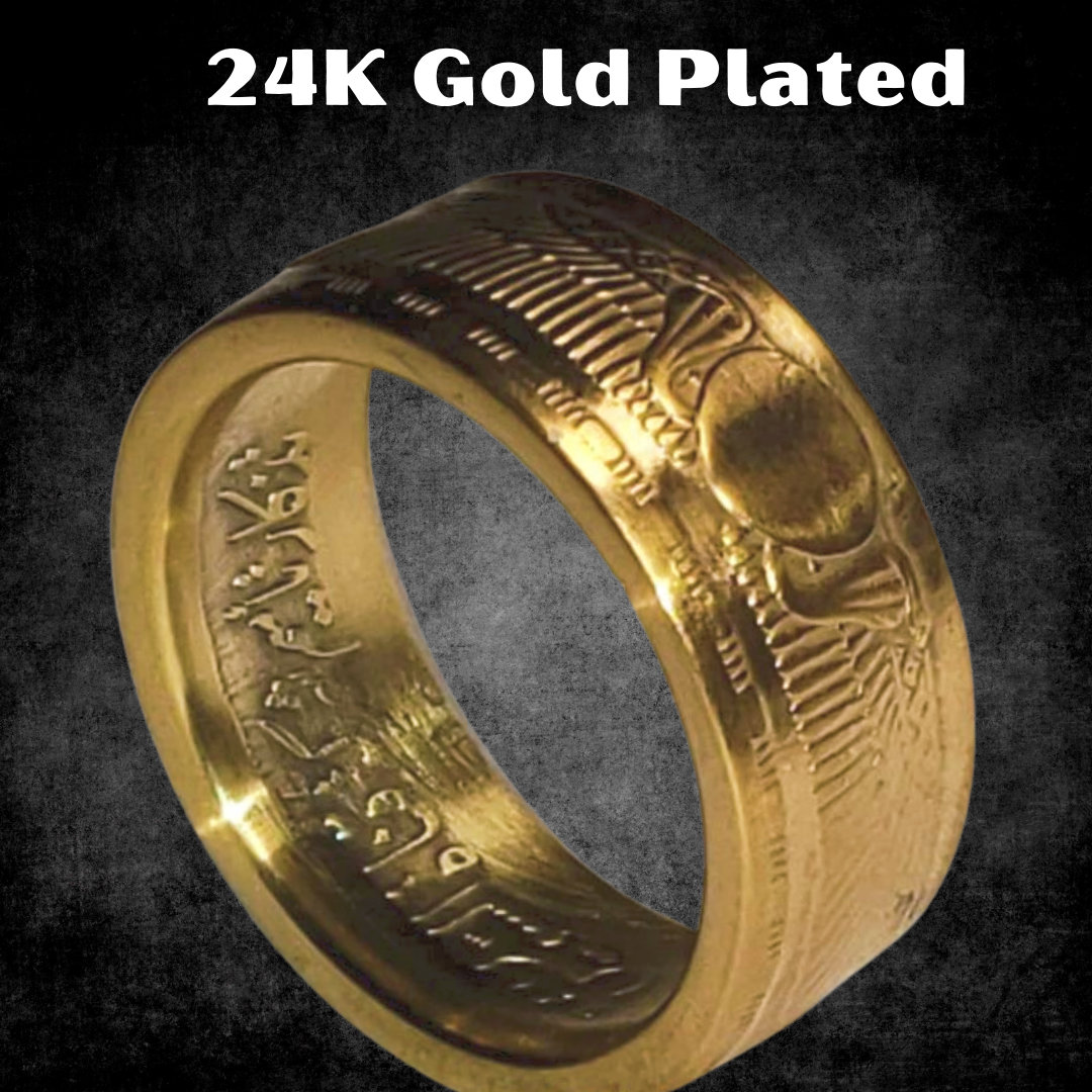 After being asked to task the job of finding the best Egyptian coin possible to convert into a coin ring I found this beautiful Egyptian 25 Qirsh Piastres (1376) 1955, 1956 or 1967 .720 Silver coin. What really stood out for me was the popular Egyptian Sun Wings and Cobras as popular as the scarab in the Egyptian culture, this was a massive part of Egyptian art history. Just as nice I found it came in the perfect size of 35mm in diameter and 17.5g of .720 Silver weight meaning it wasn't too heavy and yet not super thin or too light either.
