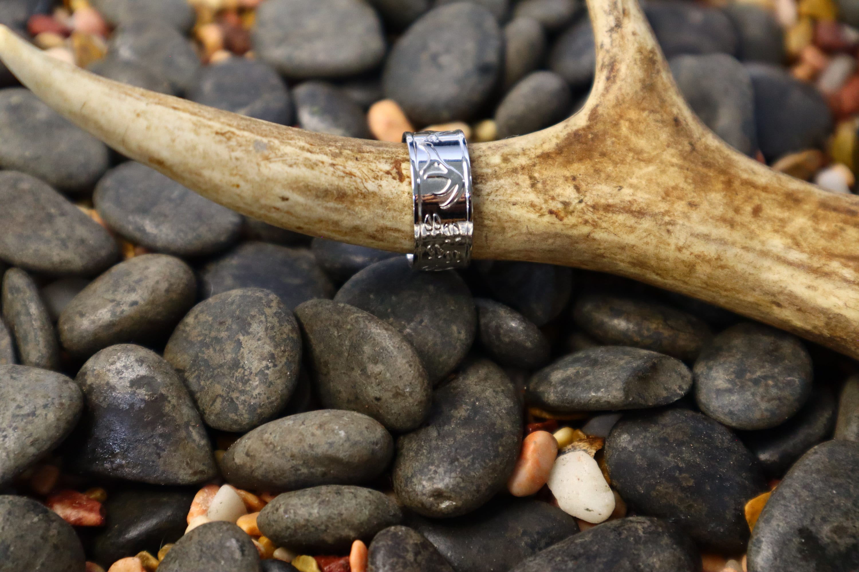 Everything here is handmade! I personally hand drew the Antler and Deer Tracks by hand and entered it into my CAD system. Created the mold, used only the highest grade stainless steel, and hand-polished to a mirror finish although if prefer the traditional stainless look of a brushed look, just ask in the "Notes to Seller" when checking out and I'll do that for you.