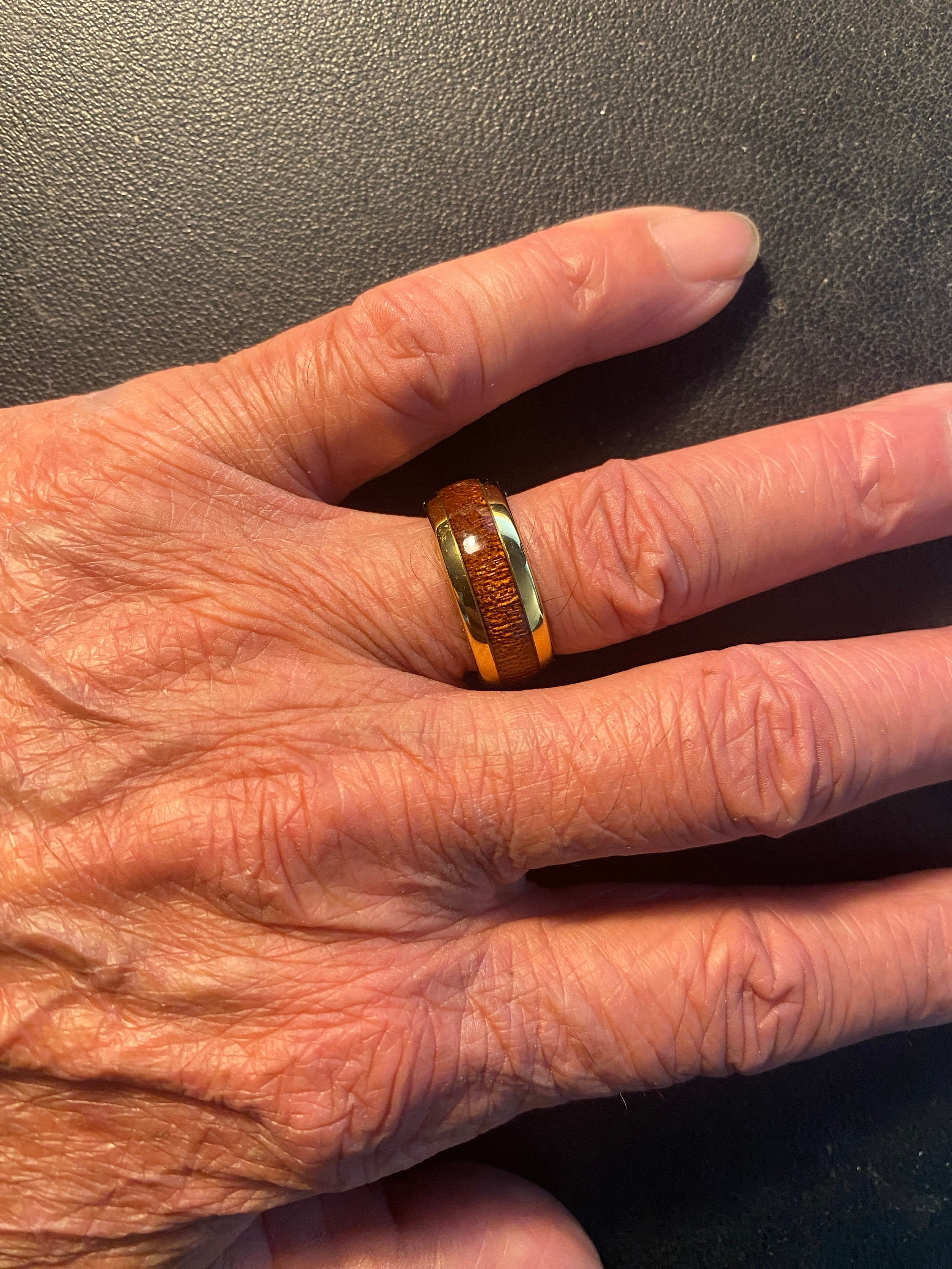 - A Thick Jewelers Epoxy over the wood Gives the Ring an Elegant Crystalline Appearance;