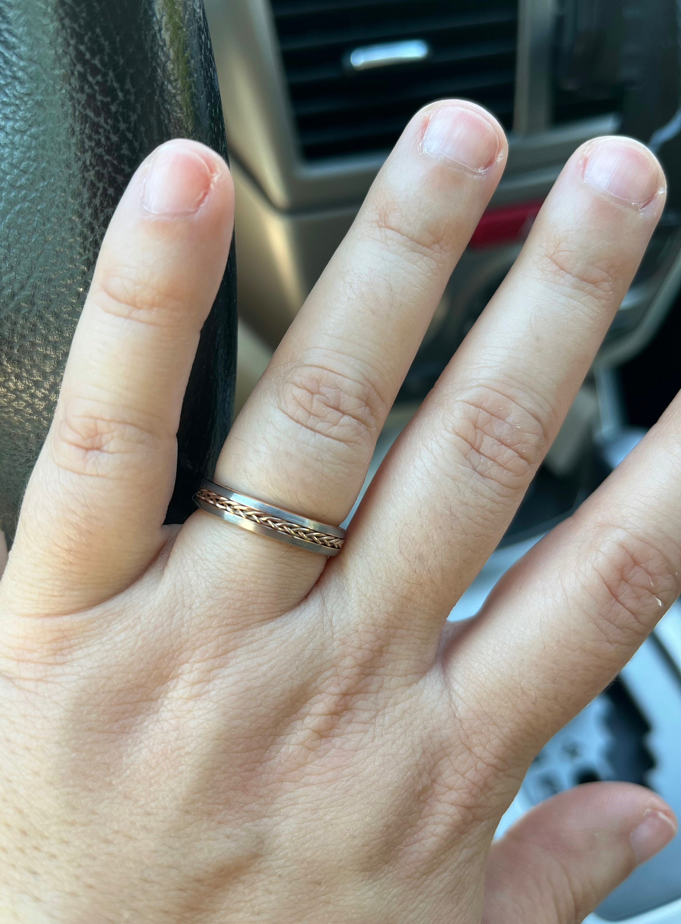 8mm Width: https://tinyurl.com/8mmRoseGoldBraidedRing (Size 7-15)